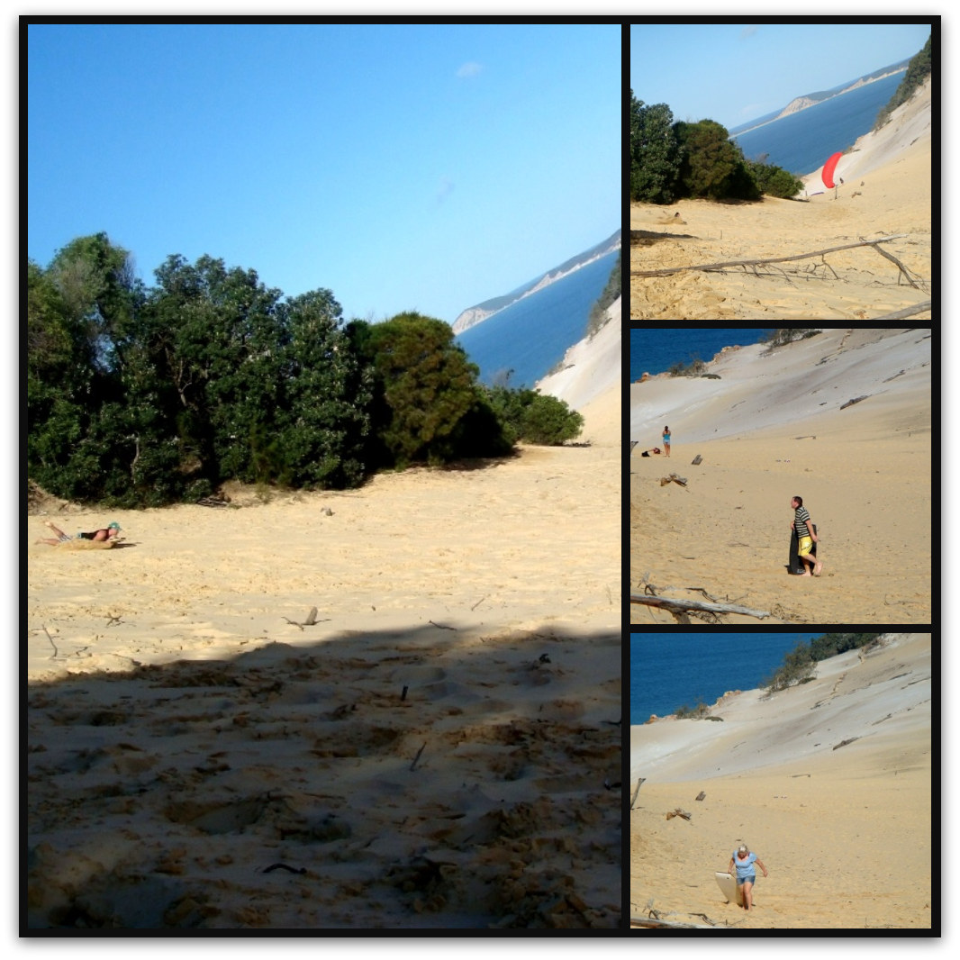 My younger sibilings suggest we trek over to the Rainbow Beach sand blow, climb it and slide down it. You know, like we used to when we were kids!