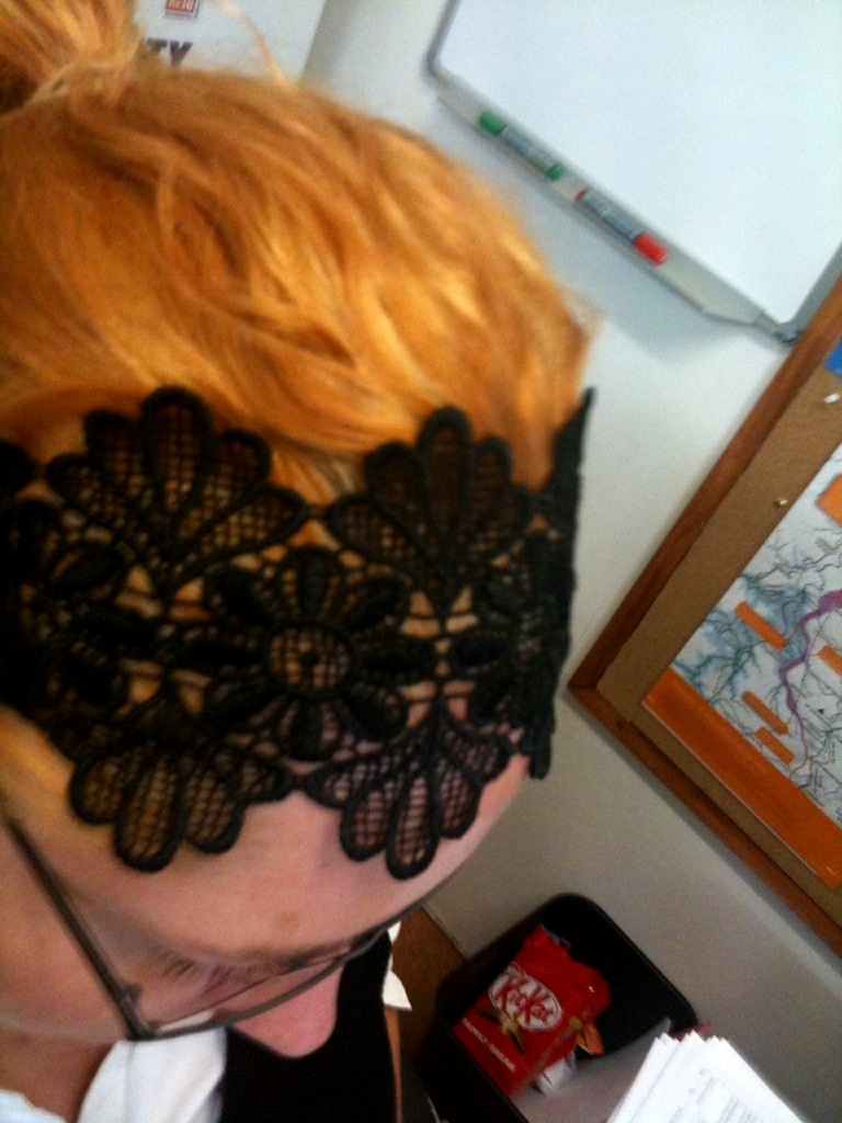 One pack of bleach, a blonding powder concoction and an ash blonde toner later and this is how it looked the next day… at work. Note the lovely headband donated by my very sheepish sister to hide the yellow roots. Bless her. (Did I mention I’m not giving it back, that I’m very attached to it now..? I didn’t? Well I am.) And yeeees, that is a Kit Kat wrapper in the bin. I was comfort eating ok!?