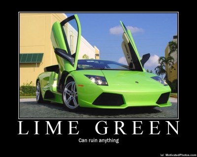 Because Lime Green Friday is all about being loud and proud. Waaaaaay over the top. And more than a little hard on the eyes. It’s cheerful, kinda patriotic (Go the green & gold!) and oh so, well, bright! On a Lime Green Friday you should expect to wear thin on some people. But you won’t care. Expect to laugh loudly and behave like a child. It’s very 80’s you know, Lime Green Friday, with a dash of the old laminate benches that your grandma had. It’s retro. So go out there and use that walk ’cause your a women’s man, no time to talk {?}… Uh, uh, uh, uh stayin’ alive… Ha! Song thing again. Enjoy. Bust a move.