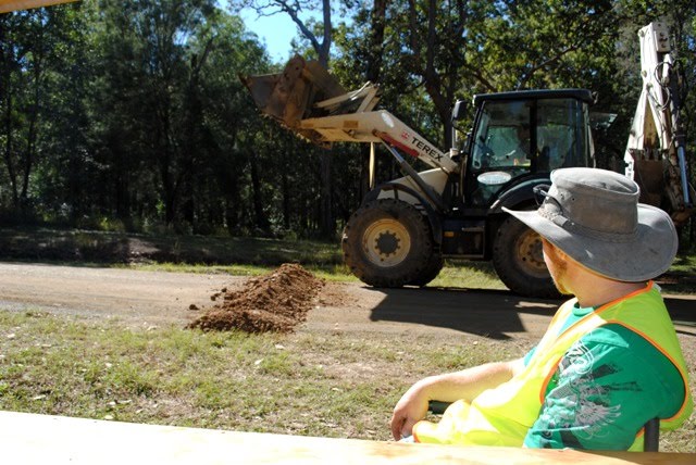 | Hubby jealously watches on, wishing for some earth moving equipment. |