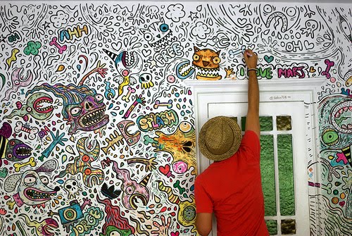 My office walls need a revamp. Like desperately. And I am thinking that maybe this is the way to do it. Ha! And to think that Hubby freaked out when I painted the blackboard wall in the home office. I do wonder what would happen with the graffiti wall idea. I will probably be shot. Like badly.