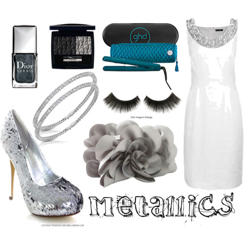 Anyways, this week theme is Metallics. Obviously. And for me metallics always means shoes. And bling. Diamond’s baby. And when I put all that together I thought fab evening gear, so apply hair straightener now. Dark eyes and lashes and black nail polish. Then off I would go to sparkle arckle the night away. And oh my gosh, that clutch, I adore, big time. I neeeeeed that clutch.