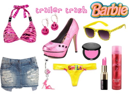 So for some reason the colour pink screams TT to me. Bright and gaudy pinks. G-string with a mini and platform heels. Shouting loudly. Belly ring. Almost deaf from shouting. And hairspray for that teased up-style. Hello stereotype, you have just been reconfirmed. So there is my dolly. Want to play along? Clippy clop in your skanky shoes over to danimezza.com and play along.