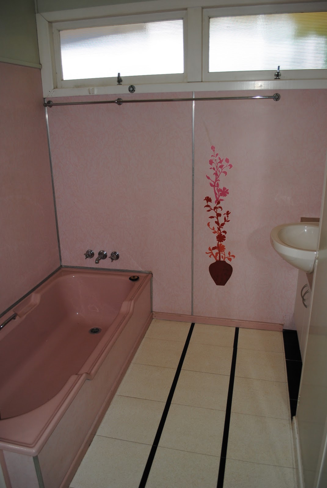 have to comment here – when we got our house it had pink walls in the bathroom and thank goodness no pink bath, and those rooms were the first that I painted. I don't mind a bit of pink but not light pink in my bathroom – it was a sad look!
