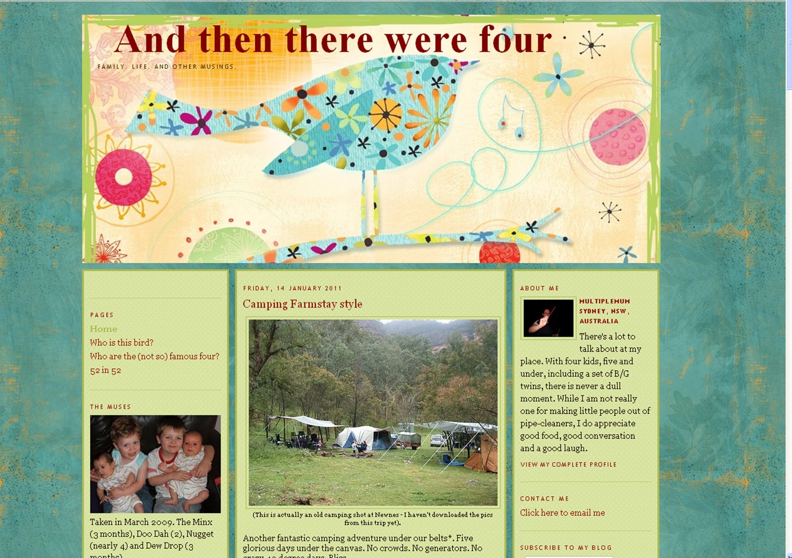 I voted for 'And Then There Were Four' but I want to tell you why. Her blog is ALWAYS a good read. I don't know how she manages to post regularly, always be interesting, and raise a family of 4 children, including one set of twins. The woman deserves it!!