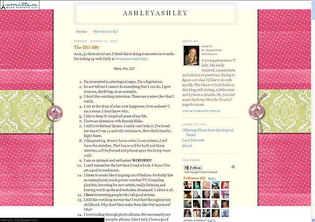 AFTER Ashley has resigned herself to not winning before winning the random draw. She had started making over her blog in a simple black and white decor {which we KNOW I love}. So I took the header she created and went from there. I put a bit of colour back but have emailed her in case she want to remove it. |