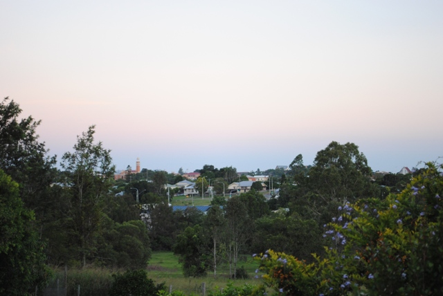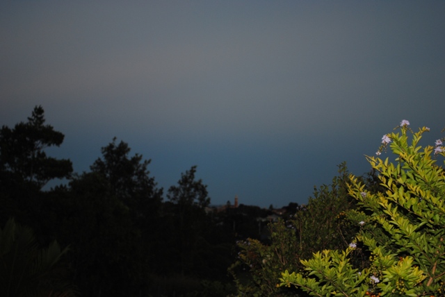 | The sun sets at my parents house + my attempt at photographing the town clock {it’s the pointy thing in the middle} |