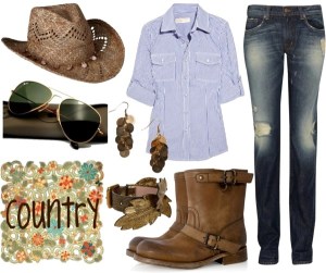 OMG I love this set! It's country but rockin' with the earrings, hat and aviators :) I would love to see Christina Hendricks and her curves in this. Smokin' hot!
