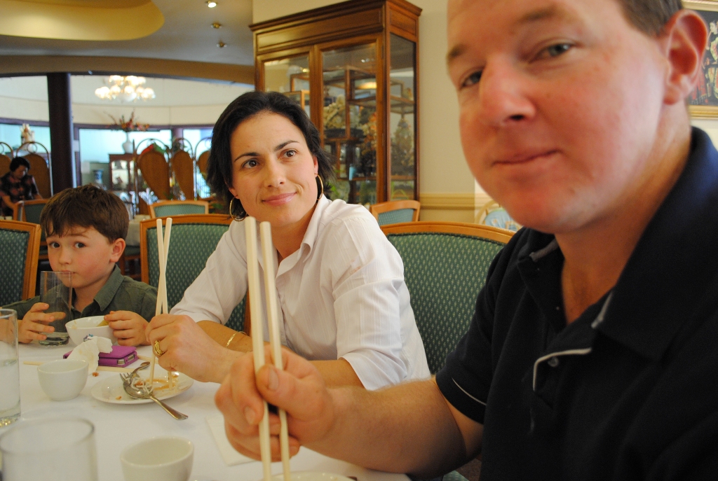 Hubby tries out the Chilli Sauce. Crap Mumma & Crap son {feel bad calling him crap, he was lovely!} look on. waiting for the crying. |