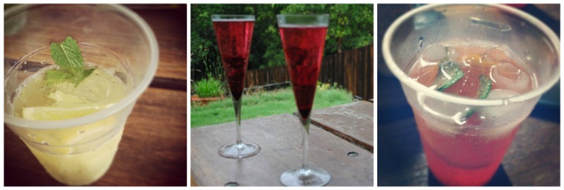 And the rest, all featuring mint, because we have LOADS. L to R – Lemon Soda Water Mojitos, Raspberry Champaign Cocktail and Orange/Mango, Pink Champaign Punch. |