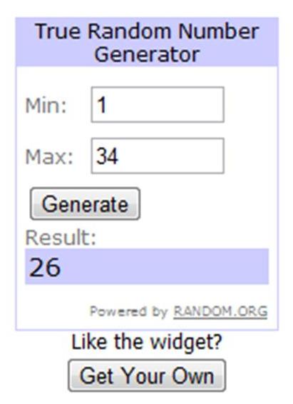 Evening ladies and gents. I hope Friday night is treating you well. We’ve just finished a number of rounds of Taboo. Fun game. Until the team members turn on each other due to lack of sleep that is. So when we all got sent to our rooms to cool off, I thought I’d update the spreadsheet and draw the winner. Plodding on over to random.org I generated this beauty. Who, in turn, generated the winner….