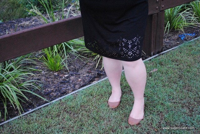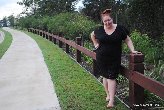 My favourite part has to be the cute cut out detail on the sleeves and hem. I made Hubby take lots of photos attempting to show you the detail. Speaking of which. the details are dress, Autograph fashion. I’m wearing a 20. It fits me really well. Despite the bad underwear line in most of these photos. That’s an underwear thing, not the dresses fault. There’s a lesson in that, I think. The shoes were $9 from Payless Shoes {on SALE!} and I am wearing a charm bracelet from American Swiss that I bought in South Africa.