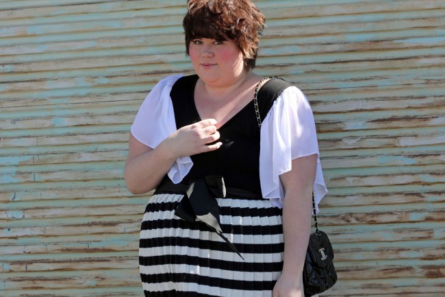 For plus size ladies there are plenty of how to dress rules. But this happens to everyone, I saw a story on one of the A Current Drama type shows about swimsuit season. Of course the first cab off the rank is for the ‘curvy’ lady {say fat, go on, I dare you} find a suit that hides your flaws. think bulk coverage and blah, blah, blah. And it went on to each body to type to give a dull, we’ve heard it a billion times description of what to wear. It made me want to go buy a teeny tiny strapless bikini just to say up yours. No way. First rule of out of the box style is toss these rules out the window. Know what suits you and wear that. Don’t let the rules tell you what to do, you just might be the exception. Try lots of stuff on, work it out for yourself, make your own rules, then break them over and over again.